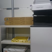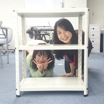 コピー用紙やカートリッジを置く用の棚を組立ました! 完成はなかなかかな~と♪ 上手に組み立てられたので、頼んで棚と1枚ぱしゃり!