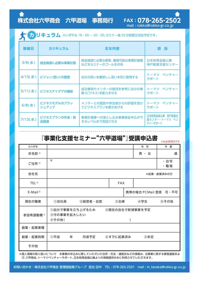 事業化支援セミナー“六甲道場”チラシ